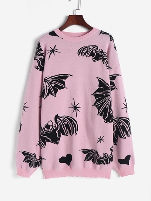 Zaful Type: Pullovers Occasions: Halloween Style: Casual Fit Type: Loose Length: Longline Collar: Crew Collar Sleeve Type: Drop Shoulder Sleeves Length: Long Sleeves Material: Nylon, PBT, Viscose Material Stretch: High Stretch Pattern Type: Bat Seasons: Fall Weight: 0.5600kg Package: 1 x Sweater