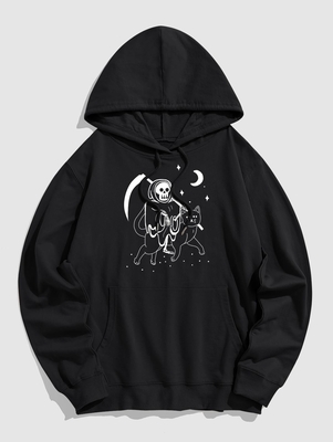 Zaful Gender: For Men Clothes Type: Hoodies Style: Fashion, Punk Occasions: Daily, Halloween Fit Type: Regular Fit Collar: Hooded Length: Regular Sleeves Length: Long Sleeves Pattern Type: Cat, Skull, Star Decoration: Front Pocket Material: Cotton Material Stretch: No Stretch Season: Fall Thickness: St
