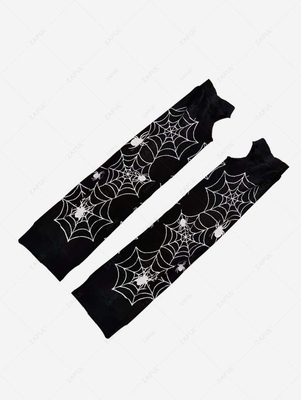 Halloween Costume Skeleton Spider Web Blood Graphic Fingerless Gloves