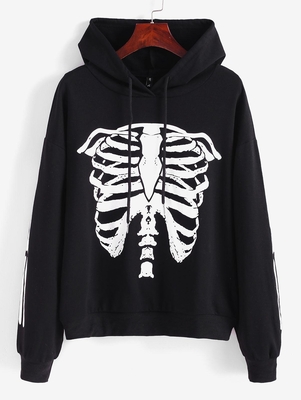 Zaful Shaped to a relaxed fit, it's topped with a drawstring collarline & a skeleton print at the front & sleeves. Style: Casual Clothing Style: Hoodie Length: Regular Sleeves Length: Full