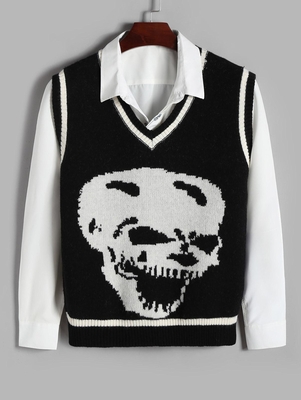 Zaful Type: Sweater Vest Style: Casual Occasions: Daily Sleeves Length: Sleeveless Fit Type: Regular Fit Length: Regular Collar: V-Collar Pattern: Skull