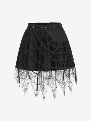 Polyester Material Stretch: No Stretch Pattern Type: Spider Web Decoration: Grommet, Lace Closure Style: Elastic Waist Season: Fall With Belt: No Weight: 0.1780kg Package: 1 x Skirt