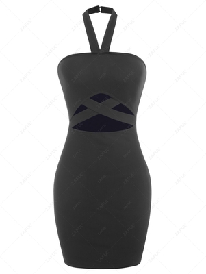 Zaful A front midriff opening is accented with crisscrossed straps in this slim-fitting mini dress that's cut to show off your legs & is fashioned with a choker-liked halter collar & a sultry open back. Style: Fashion, Sexy Occasion: Going Out, Night Out, Homecoming Silhouette: Bodycon Collar-line