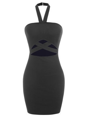 Zaful A front midriff opening is accented with crisscrossed straps in this slim-fitting mini dress that's cut to show off your legs and is fashioned with a choker-liked halter collar and a sultry open back. Style: Fashion, Sexy Occasion: Going Out, Night Out, Homecoming Silhouette: Bodycon Collar-line