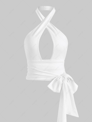 Zaful It's cut to a halter silhouette with a crossover & cutout front. However, it's the wrap-around that sets it apart from the rest. Style: Sexy Shirt Length: Crop Top Collar: Halter Collar