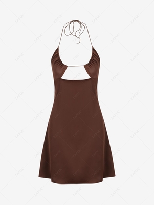 Zaful A striking piece for sunny days, this halter mini dress is crafted from soft, silky texture, & features a bold cutout bodice & an alluring open back that accentuates its sleek & sexy cut. Style: Cute, Sexy Occasion: Date Night, Night Out Silhouette: A-Line Collar-line: Halter Sleeves Leng