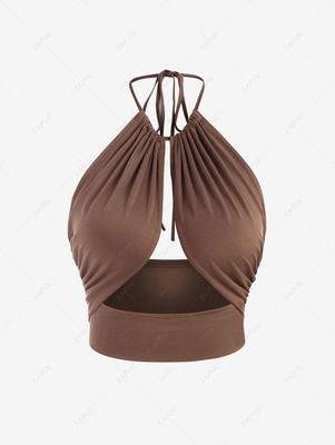 Zaful Topped with a halter collarline, this sleeveless top is designed with daring cut-out panels & ruched detail. Ideal for slipping on with some straight-leg trousers, we reckon. Style: Sexy Shirt Length: Crop Top Collar: Halter Collar