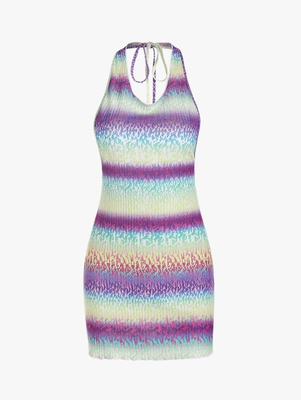 Zaful Style: Sexy Occasion: Beach, Vacation Silhouette: Bodycon Collar-line: Halter Sleeves Length: Sleeveless Dresses Length: Mini Material: Polyester, Spandex Material Stretch: Slight Stretch Pattern Type: Ombre Decoration: Backless Season: Fall, Spring, Summer With Belt: No Weight: 0.1550kg Package: