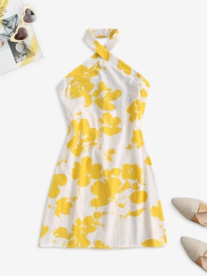 Zaful Style: Cute Occasion: Daily, Vacation Silhouette: A-Line Collar-line: Halter Sleeves Length: Sleeveless Dresses Length: Mini