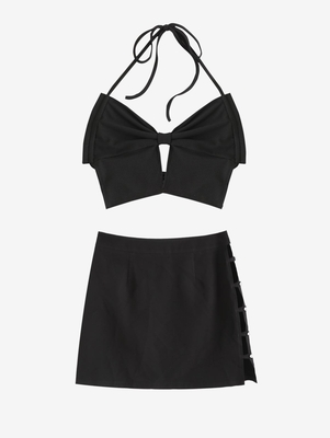 Zaful Occasion: Daily, Date Night, Going Out, Night Out Style: Cute, Sexy Fit Type: Regular Collar-line: Halter Sleeves Length: Sleeveless Silhouette: Bodycon Bottom Length: Mini Waist Type: High Closure Type: Button Fly