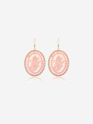 Handmade Rose Pattern Oval Shape Dreamcatcher Pendant Earrings