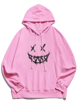 Zaful Modern & casual, this piece pullover features smiley face graphic in the middle, slightly loose fit silhouette, pair with jeans for daily street style look. Clothes Type: Hoodies Style: Casual Shirt Length: Regular Sleeves Length: Full Pattern Type: Graphic Decoration: Front Pocket Material