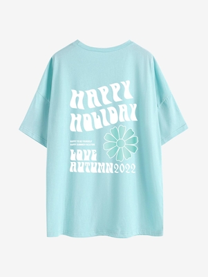 HAPPY HOLIDAY Graphic Oversized T-shirt Xl Light Blue