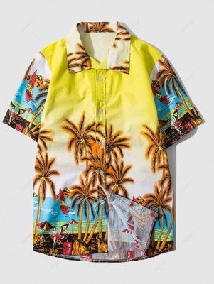 Zaful The shirt is a perfect getaway attire. The palm tree landscape print accentuates the vacation vibe of the shirt, bringing a natural flair. Sport the piece whenever you feel the need for that vacation sensation. Shirts Type: Casual Shirts Style: Casual Occasions: Daily, Vacation Fit Type: Regul