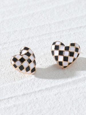 Zaful The plump heart silhouette & two tone checkerboard pattern bring boldly fun looks to these earrings. Earring Type: Stud Earrings Gender: For Women