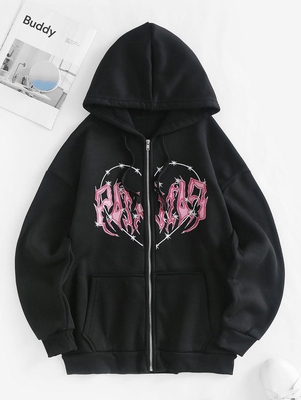 Material: Polyester Material Stretch: Slight Stretch Fit Type: Loose Pattern Style: Graphic, Heart, Print Decoration: Pocket, Zip Front Seasons: Fall Weight: 0.4700kg Package: 1 x Hoodie