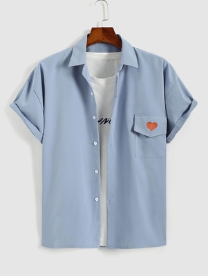 Zaful Shirts Type: Casual Shirts Style: Casual Occasions: Daily Fit Type: Loose Shirt Length: Regular Sleeves Length: Short Collar: Turn-down Collar Material: Polyester Material Stretch: No Stretch Pattern: Heart, Print Decoration: Button, Pocket Season: Summer Weight: 0.2400kg Package: 1 x Shirt