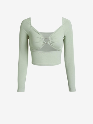 Heart Ring Cut Out Ribbed Tee S Light Green