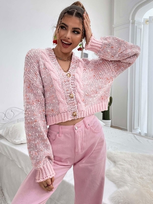 Heathered Textured Knit Cropped Cardigan S Light Pink