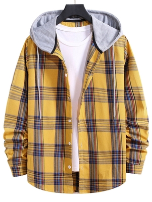 Zaful This plaid shirt is cut in a relaxed silhouette that's perfect for layering. Features a full-length button front closure topped with a drawstring hooded collar, long sleeves, & a rounded hem. Pair it with ripped jeans for a stylish look. Shirts Type: Casual Shirts Style: Casual Occasions: D