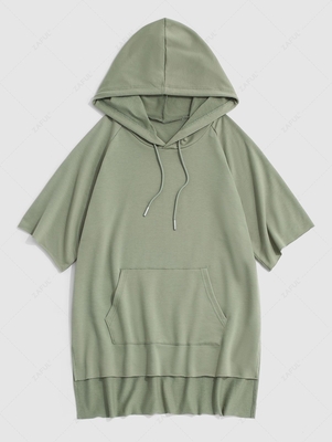 Hooded Side Slit High Low T-shirt 2xl Light Green