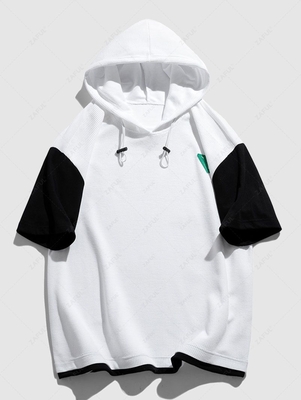 Hooded Textured Colorblock Loose Short Sleeve T Shirt M White