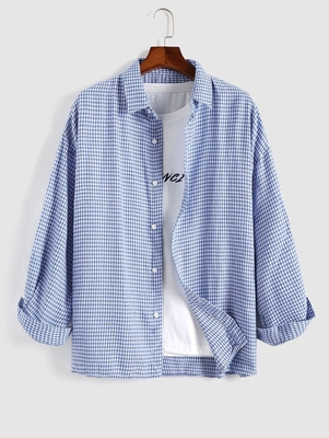 Zaful This shirt is a must-have for those off-duty days. Featuring an on-trend houndstooth pattern with charming dropped shoulders. Style with a basic tee & joggers to complete the look. Shirts Type: Casual Shirts Style: Casual Occasions: Daily Fit Type: Regular Fit Shirt Length: Regular Sleeves