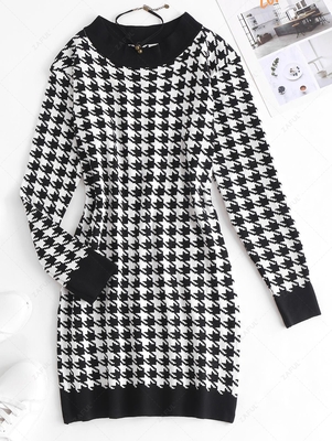 Zaful Knitted together from a cozy cotton blended, this snug layer is cut into a slim fit with long sleeves & a crew collar before being cloaked in a series of houndstooth. Style: Brief Occasion: Daily