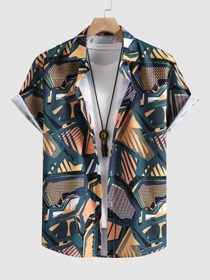 Zaful Shirts Type: Casual Shirts Style: Casual Occasions: Beach, Daily Fit Type: Skinny Shirt Length: Regular Sleeves Length: Short Collar: Turn-down Collar Material: Polyester Material Stretch: No Stretch Pattern: Print Decoration: Button Season: Summer Weight: 0.1900kg Package: 1 x Shirt