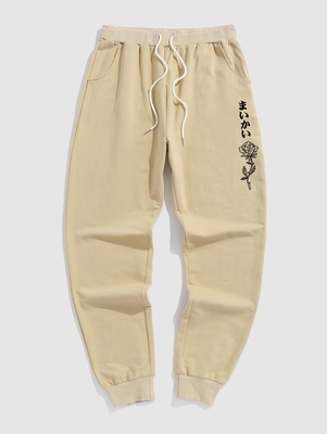 Zaful Pant Style: Jogger Pants Style: Fashion Occasions: Daily Pant Length: Long Pants Fit Type: Regular Front Style: Flat Closure Type: Drawstring Waist Type: Mid Pattern Type: Rose Print