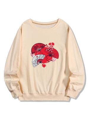 Japanese Fan Print Pullover Sweatshirt 2xl Peach