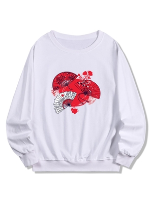 Zaful The sweatshirt features a round collarline with drop shoulders & long sleeves. The relaxed bodice has a Japanese fans pattern! Take a quick, cozy break in the sweatshirt! Clothes Type: Sweatshirts Style: Casual Occasions: Daily Collar: Round Collar Shirt Length: Regular Sleeves Length: Full