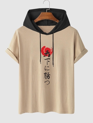 Japanese Pattern Drawstring Hooded T-shirt Xxl Light Coffee
