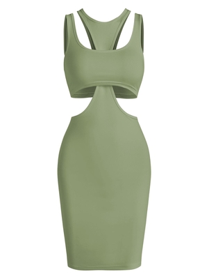 Zaful Available in an array of colors, this figure-hugging silhouette comprises an ultra-short tank top & a slinky dress (with a thin racer strap front & back) that layers to a cutout-bodice effect. Style: Sexy Occasion: Daily Silhouette: Bodycon Collar-line: U Collar Sleeves Length: Sleeveless