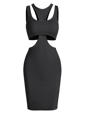Zaful Available in an array of colors, this figure-hugging silhouette comprises an ultra-short tank top and a slinky dress (with a thin racer strap front and back) that layers to a cutout-bodice effect. Style: Sexy Occasion: Daily Silhouette: Bodycon Collar-line: U Collar Sleeves Length: Sleeveless
