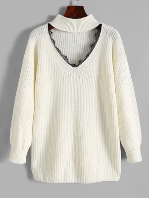 Zaful Eyelash lace trims add a little bit of feminine romance to this slouchy tunic sweater that gets you to look on style even on casual days with a modern choker collar, a flirty cutout yoke, & relaxing dropped shoulders. Type: Pullovers Occasions: Daily Style: Casual, Fashion Fit Type: Regular