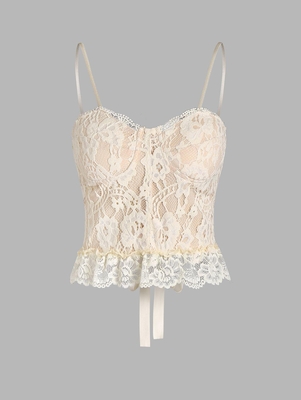 Lace Overlay Padded Lace Up Crop Camisole S Light Coffee