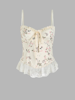 Lace Panel Tiny Floral Bustier Cami Top S Light Yellow