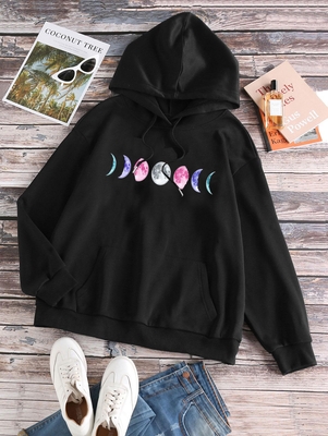 Material: Polyester Material Stretch: Slight Stretch Fit Type: Loose Pattern Style: Moon Decoration: Front Pocket Seasons: Fall Weight: 0.3800kg Package: 1 x Hoodie
