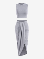 Zaful Spun from cotton-blend jersey fabric, this two-piece dress comprises a duo of figure-skimming pieces – a cropped top & an asymmetrical skirt designed with a tulip hem & draped ruched detail. Style: Fashion Occasion: Daily, Wedding, Wedding Guest Fit Type: Slim Silhouette: Asymmetrical Col