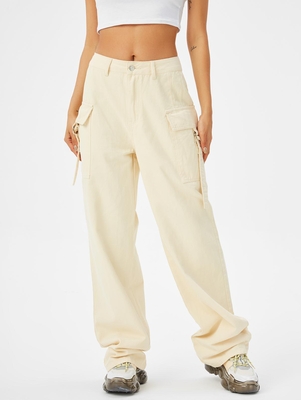 Neutral Color Pockets Wide Leg Cargo Jeans Xs Light Yellow
