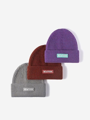 NEW YORK Patch Decor Knitted Winter Cuff Beanie Hat