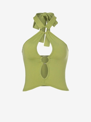 O Ring Halter Cut Out Crop Top S Green
