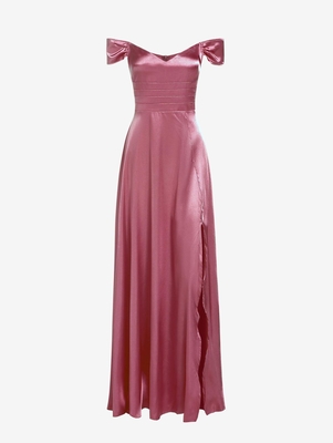 Off Shoulder Split Satin Bridesmaid Dress L Light Pink