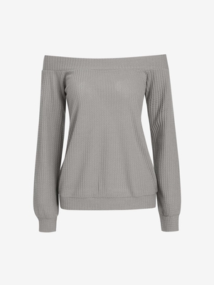 Off The Shoulder Knit Top L Gray