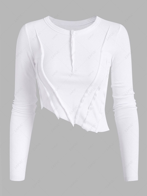Zaful Featuring a cozy stretchy fabric with chic overlocking detail, an asymmetric hem, & a slim fit, this crop top is everything we are currently loving. Team it with PU pants & strappy heels. Or take it street style & team with cycle shorts & sock boots. Style: Fashion Occasions: Daily Sh