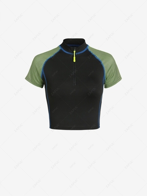 Zaful With contrast overlock-style stitching, a classic striped panel at the raglan sleeves, and a half-zip, mock collarline, this sleek cropped tee is an off-duty staple with a distinct style. Just pair it with easy cutoffs or cargo pants for a cool look. Style: Cute Occasions: Daily Shirt Length: