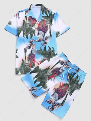 Zaful Get ready for the summer laid-back days in the shirt & shorts two-piece set which accents with the tropical palm tree leaf print to spice up the vacation vibes. Type: Shirt& Shorts Set Style: Casual Occasions: Beach, Daily, Vacation Shirt Length: Regular Sleeves Length: Short Bottom Length: Kn
