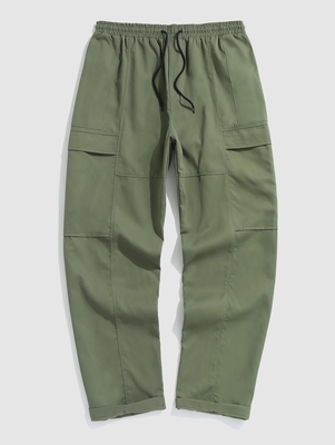 Zaful Pant Style: Cargo Pants Style: Fashion Occasions: Daily Pant Length: Long Pants Fit Type: Loose Front Style: Flat Closure Type: Drawstring Waist Type: Mid Pattern Type: Solid Color Decoration: Patch Designs