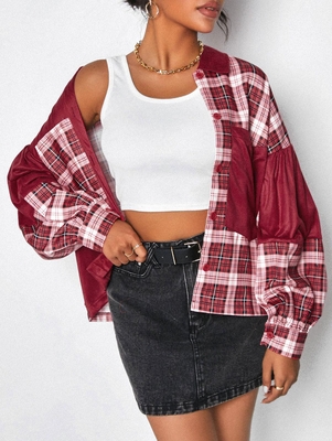 Zaful Style: Casual Material: Cotton, Polyester Material Stretch: No Stretch Type: Wide-waisted Length: Regular Sleeves Length: Long Sleeves Sleeve Type: Lantern Sleeve Collar: Turn-down Collar Closure Type: Single Breasted Pattern Type: Plaid Decoration: Pockets With Belt: No Seasons: Fall Weight: